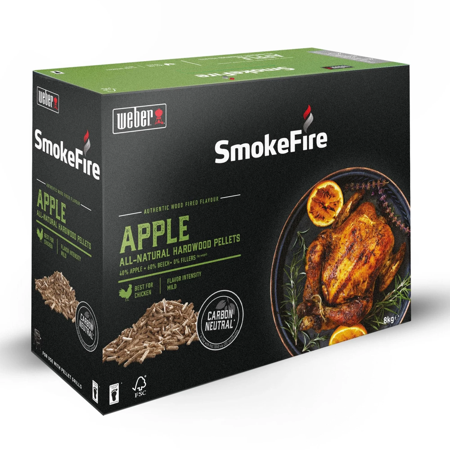 De Weber Apple hardhout pellets bestaan uit een mix van appel en beukenhout. De pellets zijn ontworpen om de smaak van kippenvlees te intensiveren tijdens het barbecueën.