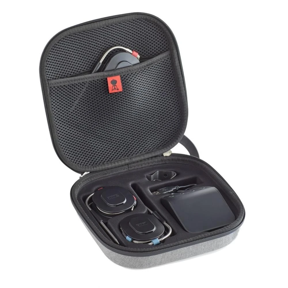 Met deze handige Connect Hub Opbergdoos van Weber heb je je Connect Smart Grilling Hub met de daarbij behorende accesoires netjes bij elkaar opgeborgen. Handig voor als je even niet meer gaat barbecuën, maar ook als je hem veilig wilt vervoeren. De binnenkant is bekleed met EVA-schuimrubber die beschermt tegen schokken en alles op z’n plek houdt, zodat er niks kan beschadigen. De buitenkant is stofdicht en eenvoudig schoon te maken. De opbergdoos is voorzien van soft-touch grepen en twee ritsen.