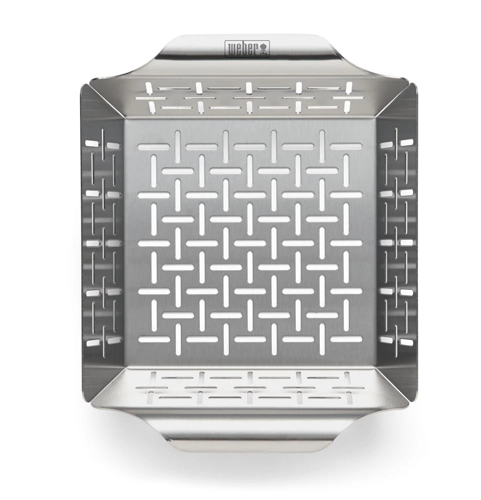 Snijd de groenten (in blokjes) en doe ze in de groentekorf. Plaats de groentekorf bij het hoofdgerecht op de barbecue. Vervaardigd van roestvrij staal. Afmetingen: 6,0 (H) x 19,1 (B) x 24,0 (D) cm.
