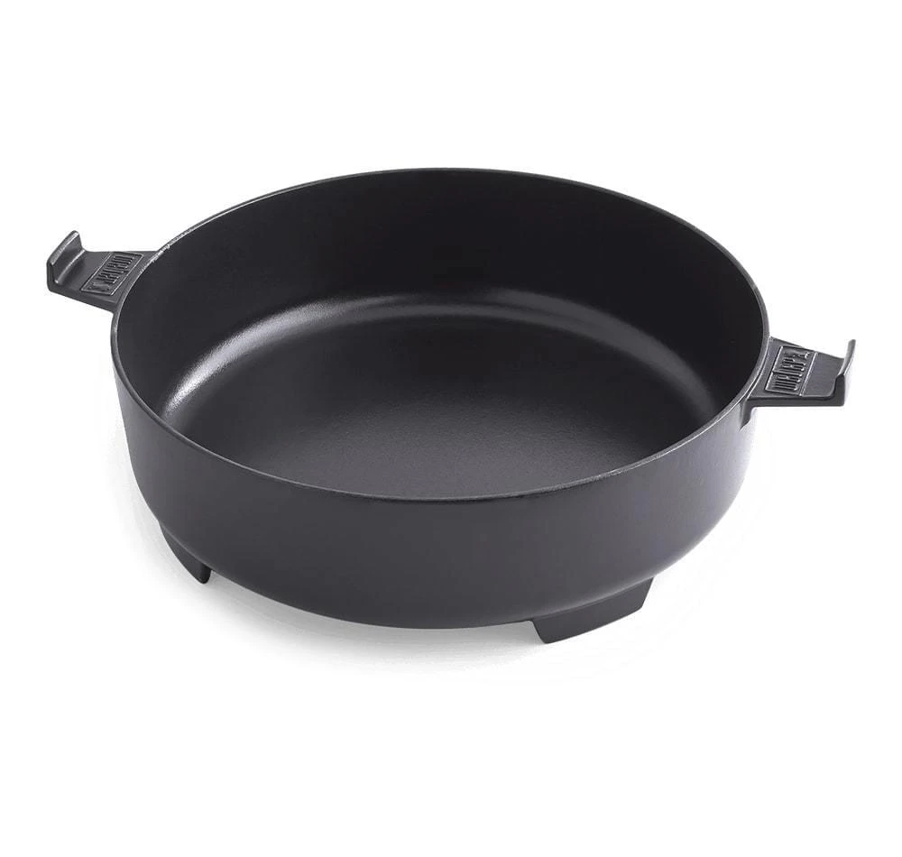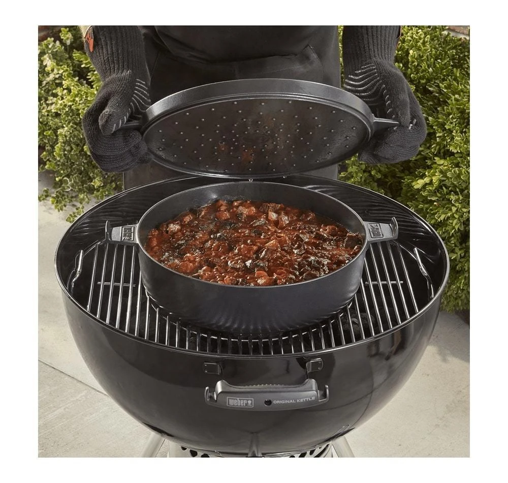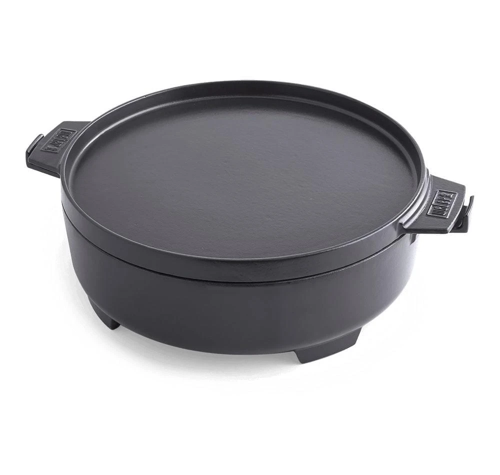 Uit de GBS lijn van Weber is dit de GBS Dutch Oven Duo die eindeloze mogelijkheden biedt voor op de barbecue. De Dutch Oven Duo is een gietijzeren braadpan en bakplaat in één. Het deksel van de pan kan je namelijk ook als bakplaat gebruiken. Daarbij is de deksel zo ontworpen dat deze wanneer hij op de pan ligt, het vocht in de pan houdt. Hierdoor is de Dutch Oven zeer geschikt om heerlijke stoofschotels, malse braadstukken en smakelijke soepen te maken. Wanneer je de deksel als bakplaat gebruikt kan je hierop een broodje roosteren of kippenborst en groente perfect garen.