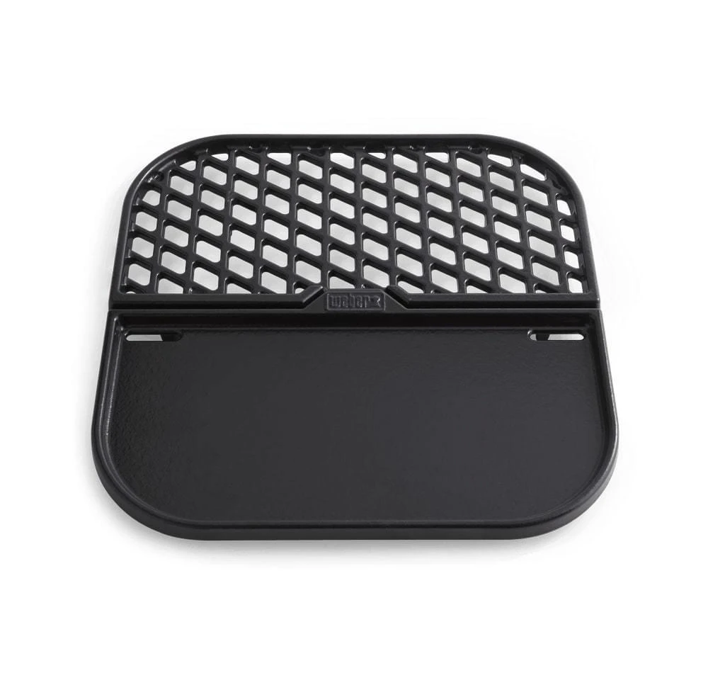 Nu hoef je niet meer te kiezen tussen grillen of schroeien, met deze grill & bakplaat van Weber is allebei mogelijk. Aan de ene kant barbecue je knapperig spek en aan de andere kant bak je tegelijkertijd een pannekoek. Of schroei een steak aan en roerbak tegelijkertijd wat groente. De gietijzeren grill & bakplaat is door de porselein-geëmailleerde finish makkelijk schoon te maken.
