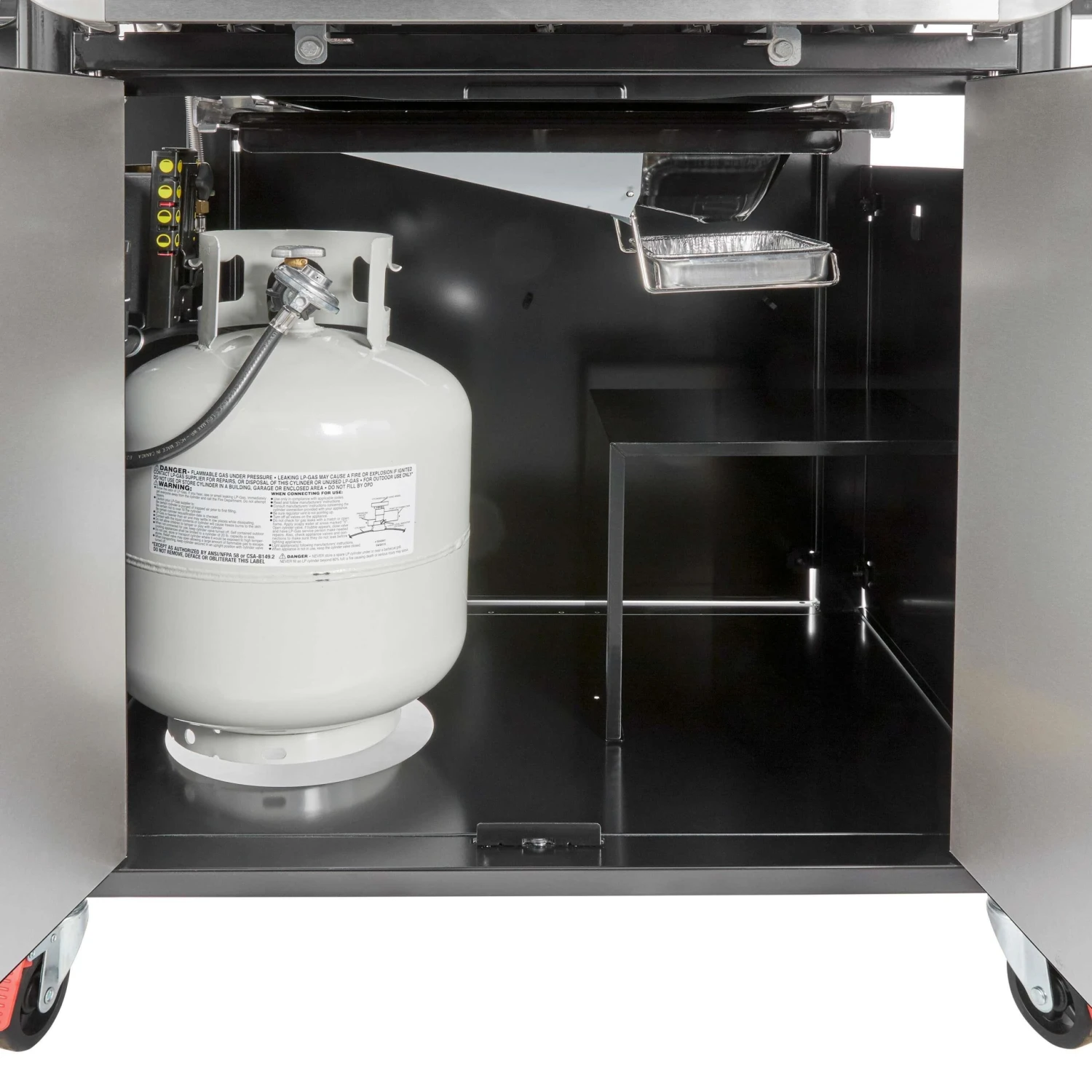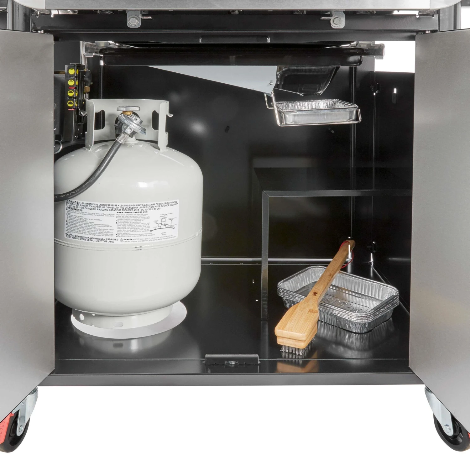 De Genesis EX-335-smart gasbarbecue van Weber heeft een vetopvangsysteem die u gemakkelijk leeg kan schrapen. De barbecue werkt op propaangas, de propaantank kunt u kwijt in het daarvoor bestemde kastje. Hier kunt u ook uw grillware en barbecuegereedschap in kwijt.