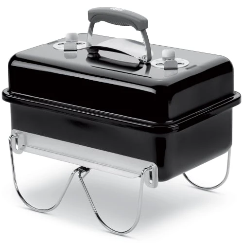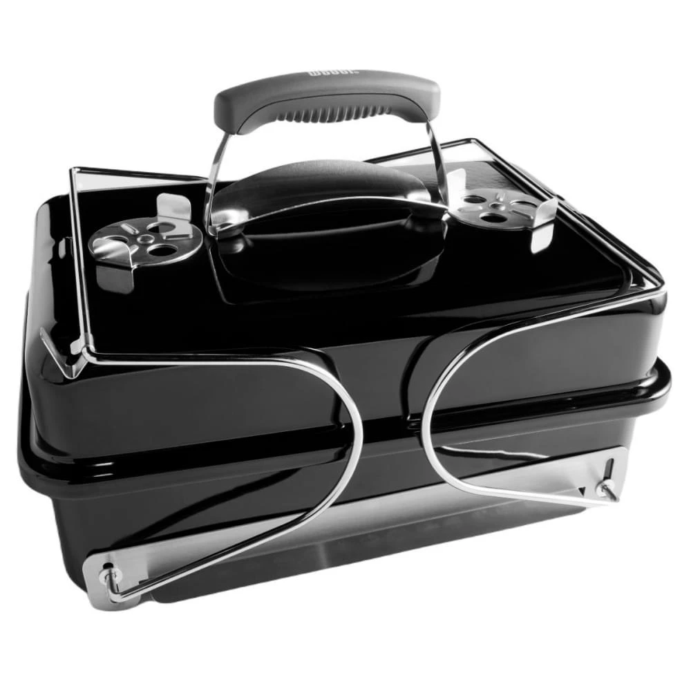De twee ventilatieroosters aan de bovenkant zijn gemaakt van roestvrij aluminium. Verder is deze Weber barbecue geëmaileerd en duurzaam. Je maakt de Go-Anywhere eenvoudig schoon en hij kan ingeklapt worden.Â
