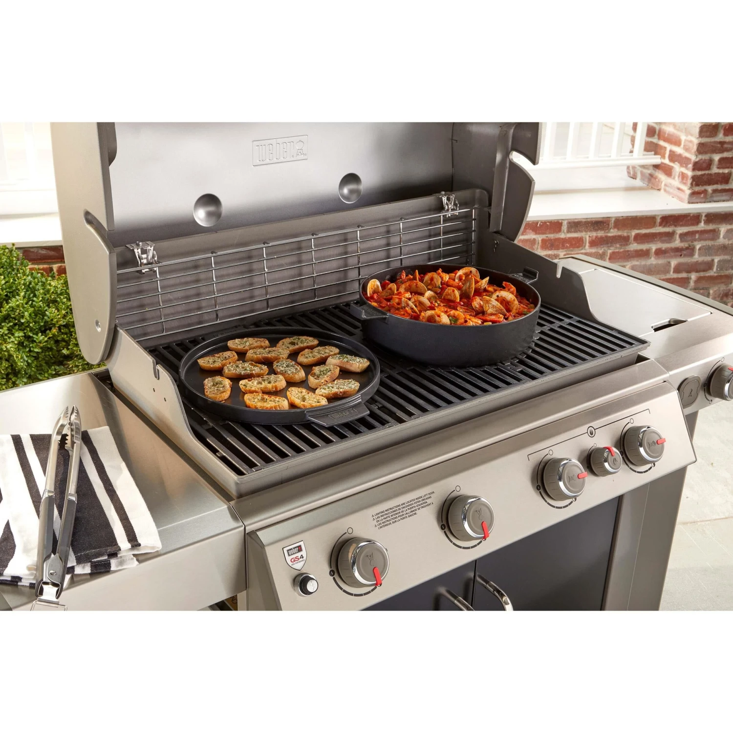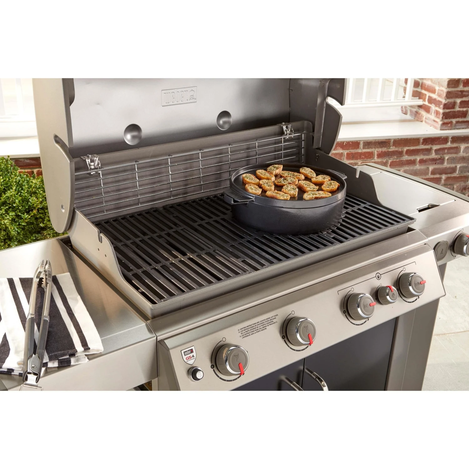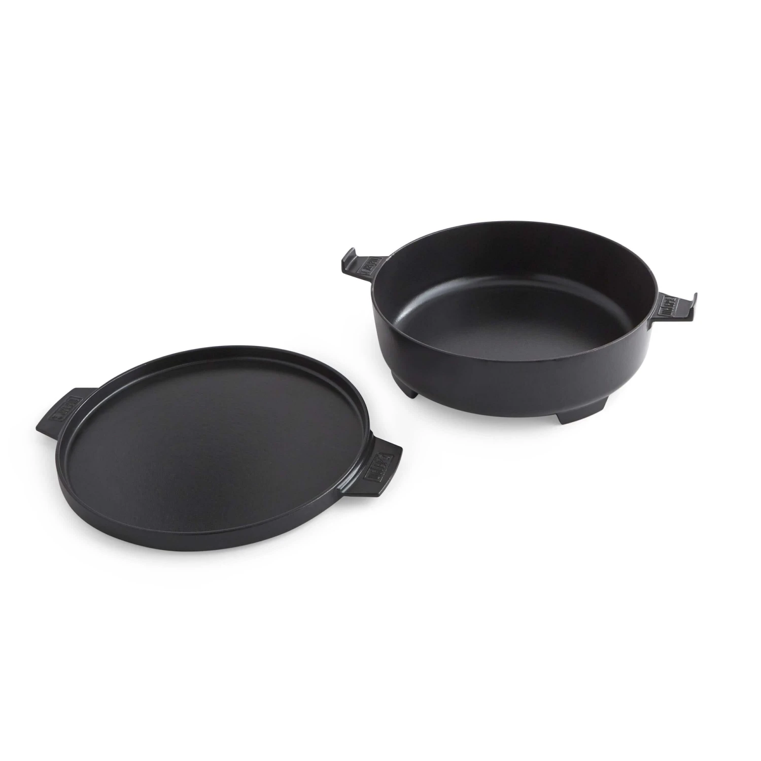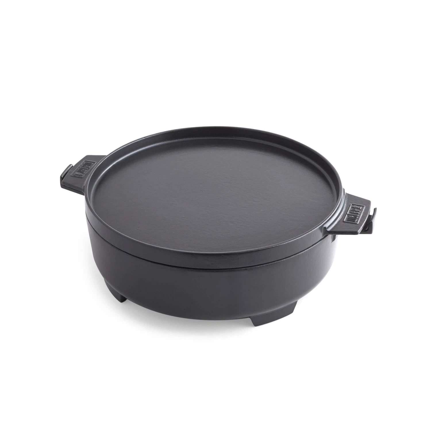 De Weber Gourmet BBQ Dutch Oven Duo is een veelzijdig kookgerei dat voor zeer veel mogelijkheden zorgt op uw barbecue. Deze Weber Dutch Oven is gemaakt van gietijzer en heeft een inhoud van 6,8 liter. Hierin kunt u diverse maaltijden bereiden, van brood tot soep en zelfs hele stoofschotels. De deksel van deze pot heeft een dubbele functie en kan ook gebruikt worden als platte bakplaat, zo kan de gehele dutch oven dus multifunctioneel gebruikt worden. Doordat er een coating over het gietijzer is geplaatst is de pot zeer gemakkelijk schoon te maken.