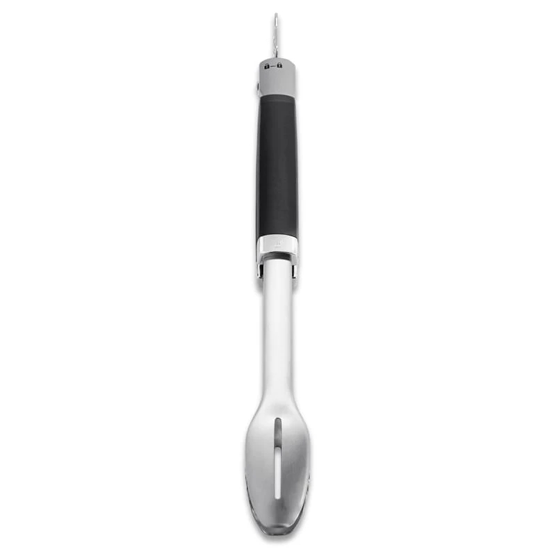 De Precision barbecuetang van Weber is een goed stuk gereedschap bij elke barbecue. De stevige tang van roestvrij staal met een degelijke en zachte handgreep ligt fijn in de hand. De platte voorkant schuif je gemakkelijk onder je eten en laat je probleemloos groente en vis keren. Met deze precieze greep verplaats je net zo makkelijk zware ribstukken. De barbecuetang heeft een handsfree vergrendeling en zo kan je hem snel en eenvoudig open en dicht doen. Met deze Weber Precision barbecue tang ligt al het eten binnen handbereik.