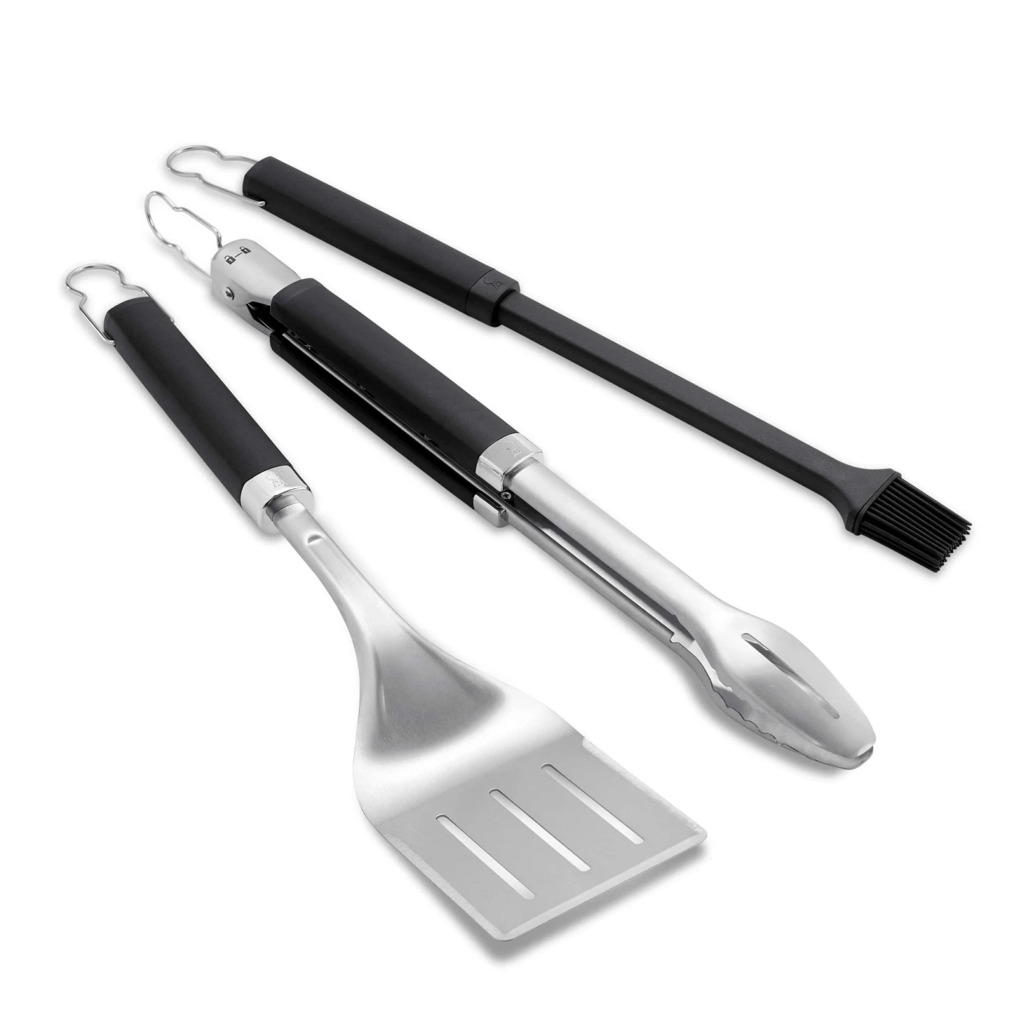 De Weber Precision Toolset 3-delig van Weber bestaat uit een barbecuetang, spatel en marinadekwast. Alle drie hebben ze een zachte handgreep voor een comfortabele en veilige grip.