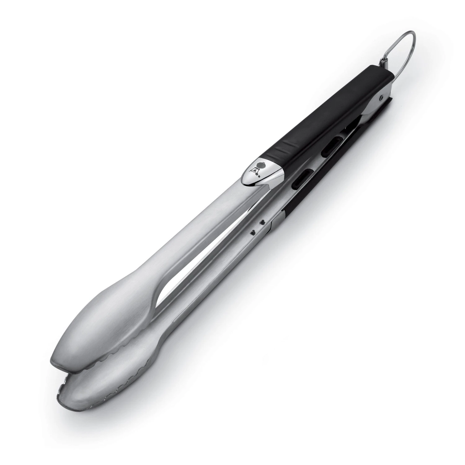 De Weber Premium barbecuetang is ideaal bij het omdraaien van bijvoorbeeld grotere stukken vlees. Deze vergrendelbare tang heeft een antislip handgreep en is gemaakt van roestvast staal. De tang heeft een lengte van 43 centimeter waardoor handen en armen ver genoeg van de warmte verwijderd blijven.