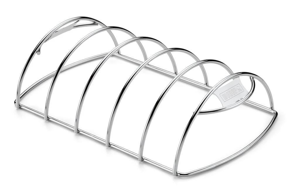 Roestvrijstalen rek dat vijf spareribs kan houden. Het vlees gaart op deze manier gelijkmatig. Geschikt voor houtskoolbarbecues van 47 cm en voor gas- en elektrische barbecues vanaf de Q 200/2000 serie.
